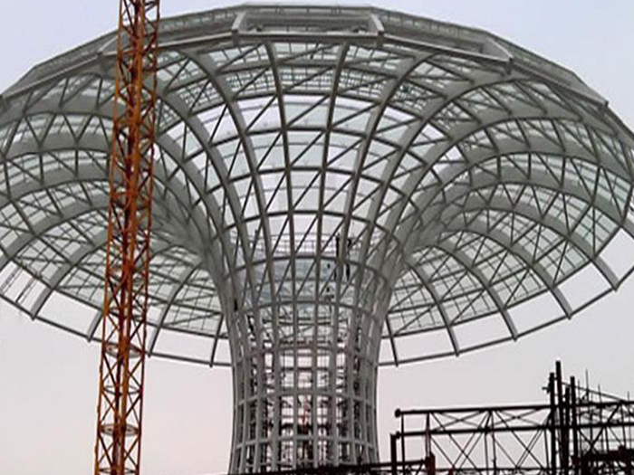 二、球形网架结构因其结构新颖,受力合理,自重轻、用钢量低等优点。如大型体育场馆球形芜湖螺栓球网架、公共场馆球形网架、电厂芜湖螺栓球网架、水泥工业球形网架、仓储物流球形网架、芜湖干煤棚工业球形网架、芜湖收费站芜湖加油站球形网架、展览中心、影剧院、商场、航站楼、候车厅、工厂芜湖车间、仓库、电视塔等球形螺栓球节点网架。国内球形网架结构主要分为:芜湖焊接球节点网架及螺栓球节点网架两种。螺栓球节点网架其构件工厂内加工量较大,现场安装便捷,适用于现场工期紧,芜湖施工条件、用电量受制约,网架形状复杂、芜湖杆件定位困难的异形结构。螺栓球节点球形网架系统基本由芜湖杆件、螺栓球、支撑支座等组成。按照节点形式可分为交叉芜湖桁架体系、四角锥体系、三角锥体系等。支撑方式多为固定支座支撑。对于大面积、大跨度及有特殊受力或伸缩要求的网架结构可采用橡胶支座、滑移支座、球铰支座等支撑形式,以满足结构自身的受力稳定、均衡,便于内力释放等设计要求。